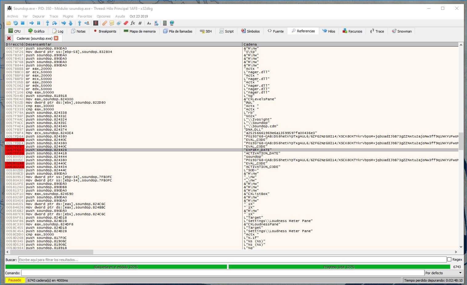 Easy!. First we are going to locate some strings that interest us using the x64dbg debugger. It has been easy to locate strings that have clues about the product key. Analyzing the assembly instruction and being in 32 bit surely an argument to a function is pushed.