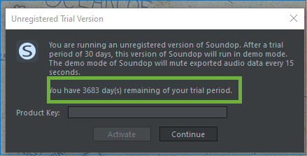 Once we run the software Soundop 32-bit version 1.7.3.9 , we see that a message skips first, reminding us of the days we have to trial.